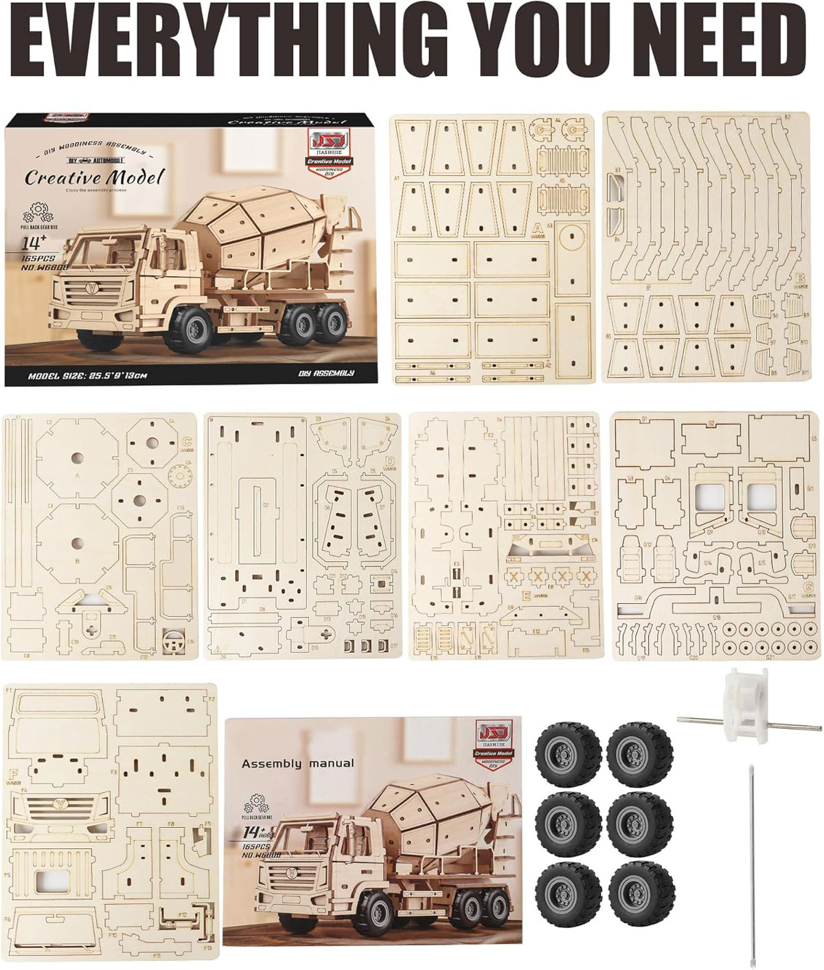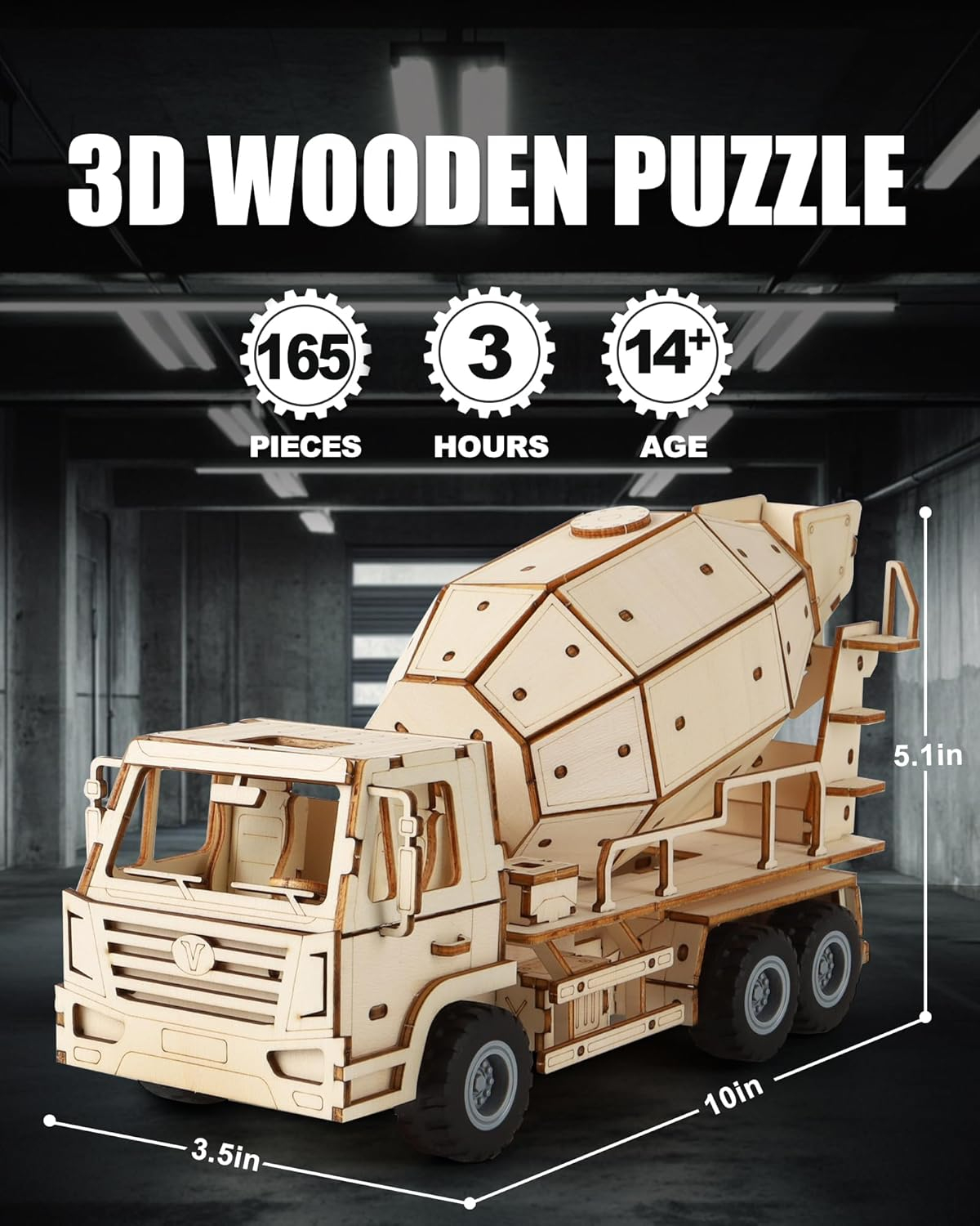 ADVANCED HANDS-ON EXPERIENCE – This wooden 3D puzzle is inspired by a cement mixer truck. This DIY wooden craft kit includes 165 pre-cut wooden pieces that you assemble yourself. The entire process takes about 3 hours. Finished size: 10 × 3.6 × 5.1″.
